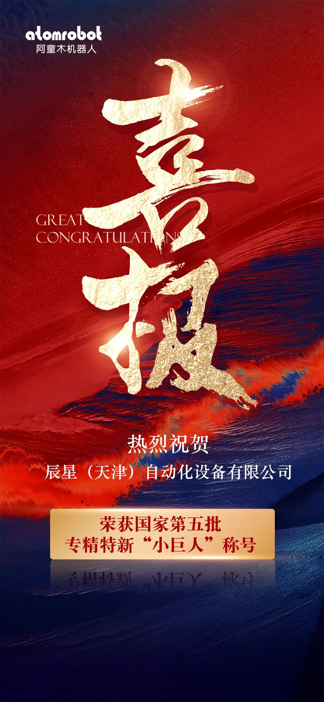 日前,国家级第五批专精特新“小巨人”名单公布,辰星(天津)自动化设备有限公司(品牌:阿童木机器人)荣誉登榜!