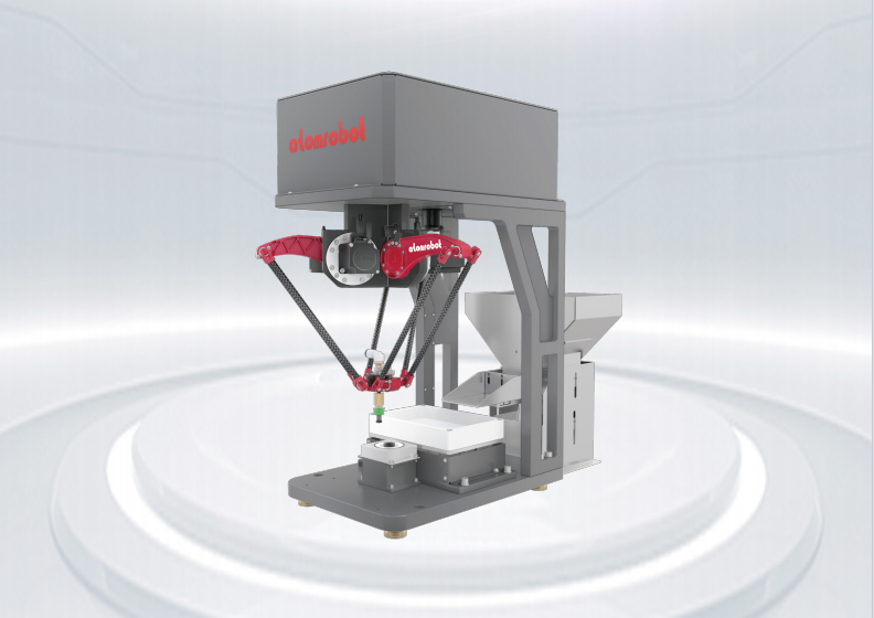 该款工作站集成DELTA机器人、工业摄像头和电脑软件,能够智能识别细小零件,协同机械手臂,进行零件高速精准摆盘。工作站整体体积为254*388*601,具有构造简单、运动速度快(速度0.8s/次)、精度高重(复定位±0.05mm)、作业稳定可靠核心优势。