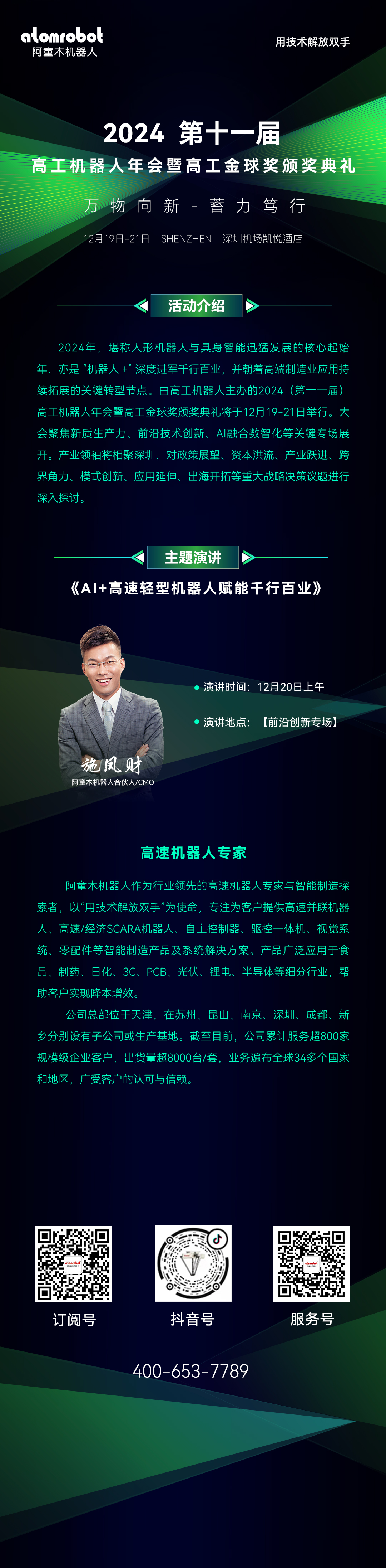 阿童木机器人合伙人/CMO施凤财将携创新技术登场2024高工年会