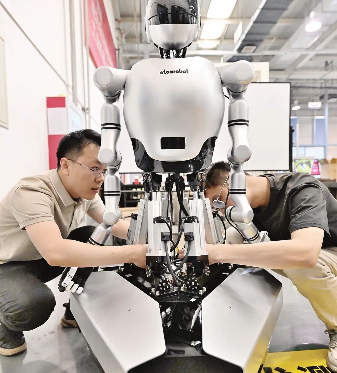 这是日前在武清区举行的第二届京津冀智能制造装备协同发展大会上的一个场景。“这款人形机器人的定位是工业机器人,我们在机器人的腰部与脖子部位引入了并联机构,使机器人承载能力更大、旋转更自由。这款机器人腰部的承载能力有200公斤,手臂的承载能力有5公斤。我们正在对它进行相关应用场景的训练,让它具备一定的智能决策的能力和行为,比一般工业机器人更智慧更聪明,将来把它应用在食品、药品、电子、新能源等行业,估计7月份就可投入应用。”阿童木机器人生产企业辰星(天津)自动化设备有限公司董事长兼首席技术官刘松涛向大家这样介绍这款帅气的机器人。