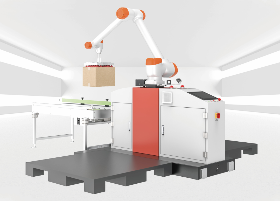 过去,码垛依赖双手与身体的负荷。两个人力,往复于输送带与托盘之间——弯腰、取盒、对齐、层叠、再垫纸。
