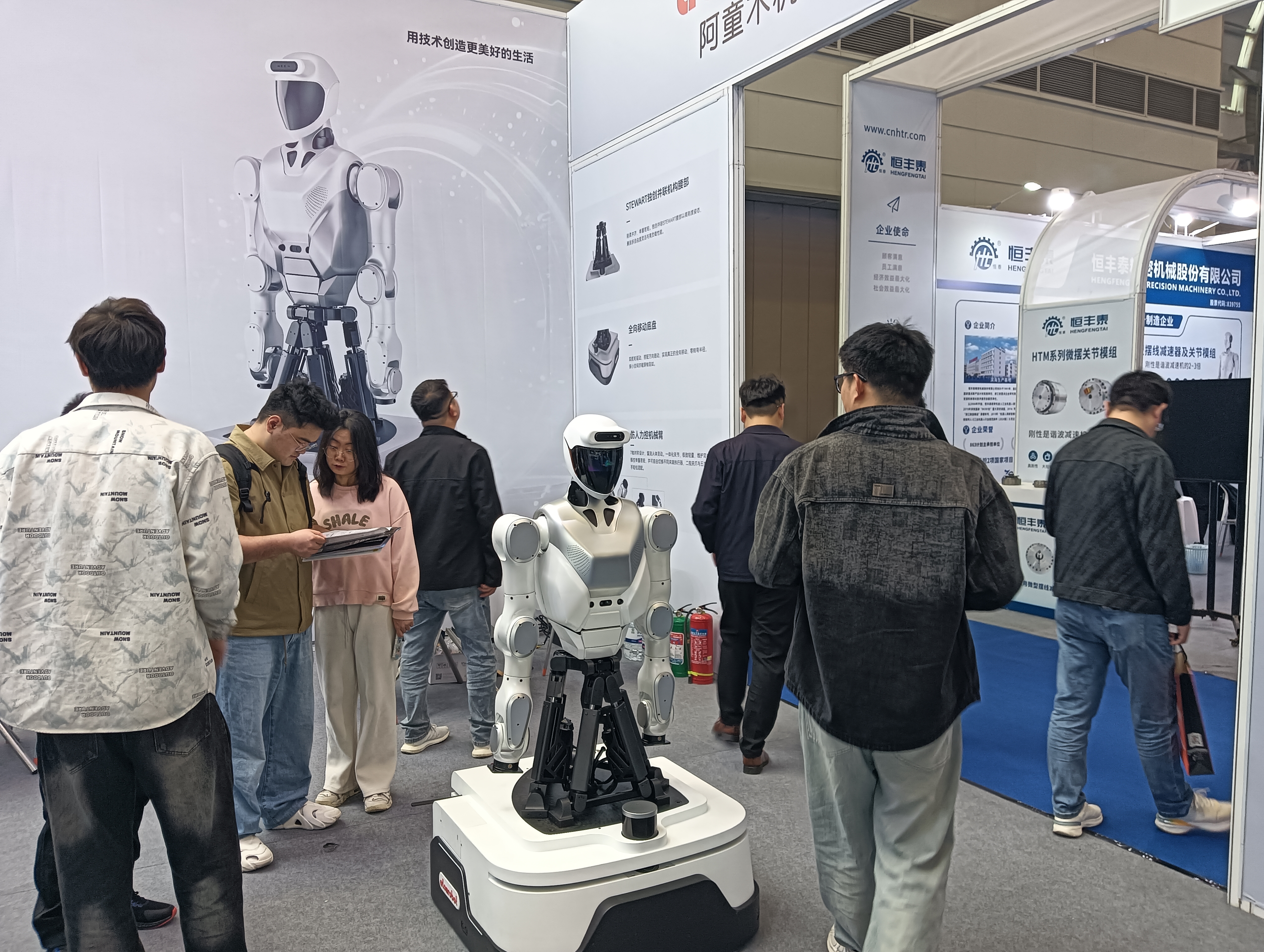阿童木机器人另辟蹊径:以腰部并联结构加轮式底盘,定位于工业级应用。“人形机器人不是为了模仿人走路,而是为了做人不方便做、做不了、做不好的事。”现场工作人员介绍,天兵一号放弃了对“双足行走”的选择,转而采用全向移动底盘与独创的STEWART并联腰部,重构了力传递路径与运动自由度分配方式。