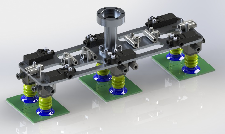 根据单盒装入袋数以及摆放逻辑,采用不同形式的末端执行器,均实现“多抓一放”功能。多吸盘布局抓手单次循环可完成并排多槽单层的摆放。吸盘采用无痕吸盘,并配有真空保持装置,避免吸取时破坏药袋及甩料的现象。多层吸具抓手单次循环可实现单槽多层颗粒袋的摆放,内部独特结构可保证负压均匀分布于储料槽内,且连续堆叠下仍保持可靠吸取状态。在更换物品尺寸或者更改装槽间隔时,更换新的末端抓手即可,无需更换机器人。