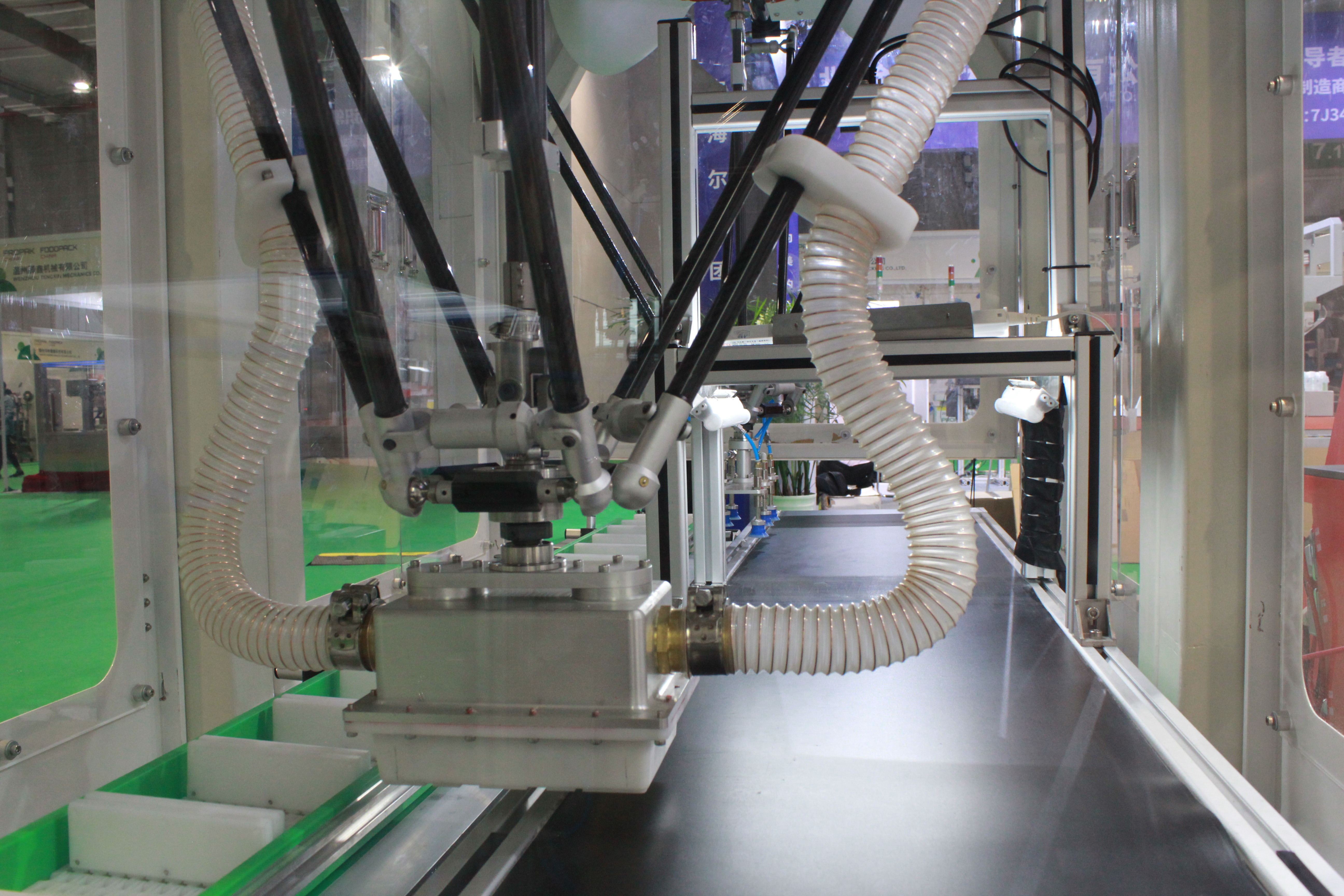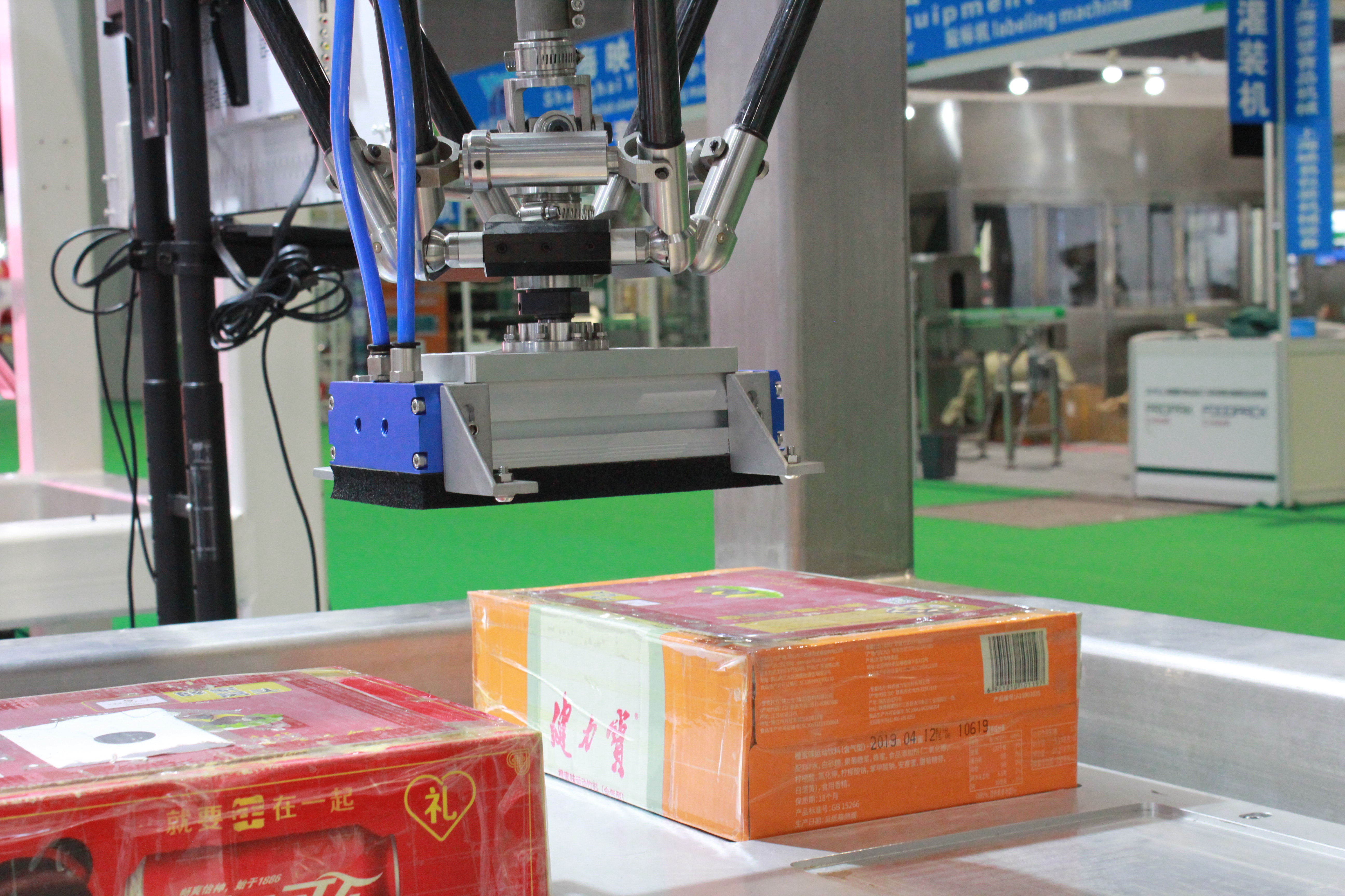 可作为独立单元布置于整条产线的装箱环节,前端直接与来料输送线、开箱机出箱线对接,后端可对接封箱线、二次包装线。结构紧凑,模块设计,便于搬运以及布局;展示样机的功能可推广至更多领域的类似关节,例如纸巾包装箱、冰激凌装箱、输液袋装箱,以及多种产品的中转筐装框环节。我们相信,未来随着人工成本的增加,劳动力的减少,并联机器人在袋装产品装箱领域,一定会得到大量的应用。
