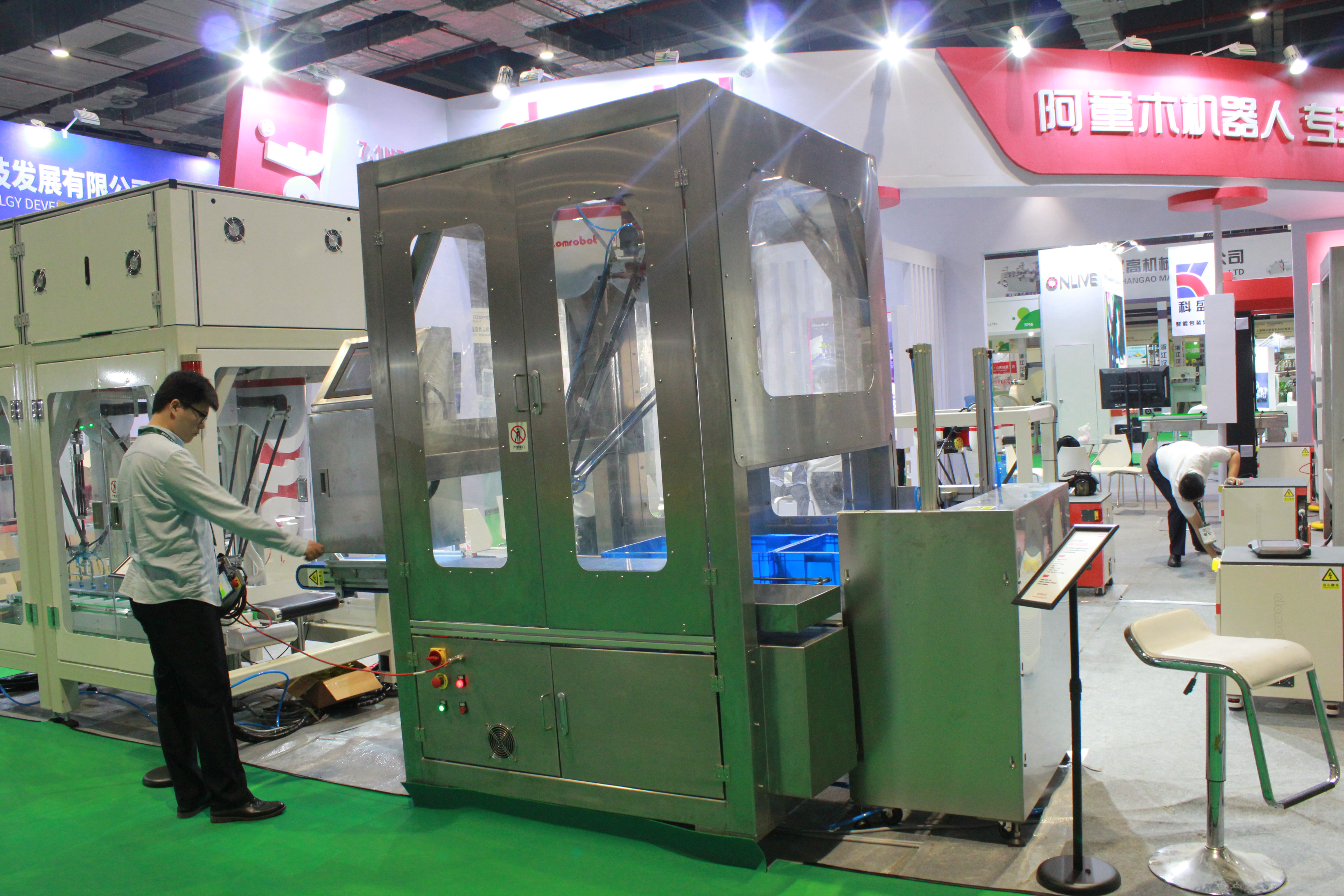 (1)多机联动技术:机器人的高速运动,并联机器人单机单抓单放颗粒袋,速度可以达到120袋/分钟,针对物料多的特点(往往超过300袋/分钟),我们开发出多机联动应用方案和控制技术,确保用最少的机器人完成要求;目前在线运行最多的是5台联机;速度达到500袋/分钟;