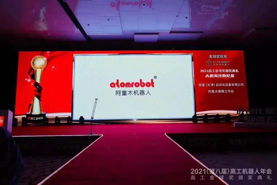 值得一提的是,凭借技术的充分可靠以及对客户需求的深厚了解,阿童木机器人潜心打造的阿童木装箱工作站产品在2021高工金球奖上斩获“2021年度创新产品”奖。