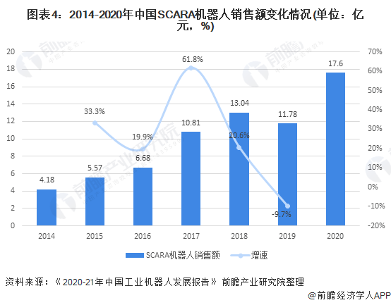 此外,在产品性能与产品应用场景方面,并联机器人与SCARA机器人其实有着极强的延展性与互补性。将并联机器人的稳定性特点融入SCARA机器人之中,打造又快又稳的SCARA机器人,无论是对于SCARA机器人市场还是对于阿童木机器人来说都意义深远。在市场机遇方面,近年来,在众多种类工业机器人产品中,SCARA机器人的发展非常迅速,同时其需求量也上升较快。