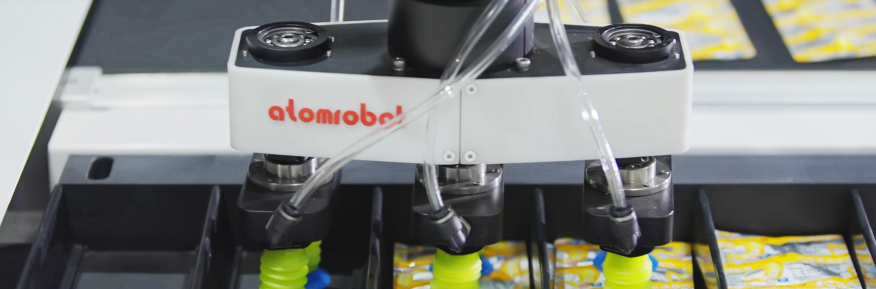截至目前,阿童木机器人累计携手百余家规模级食品生产企业,出货量超数千台/套。其中,并联机器人,以并联方式驱动,具备高速度、高精度、柔性作业等优势,备受食品行业青睐,被广泛作为食品分拣理料、分拣装托及小箱装箱等工序环节。