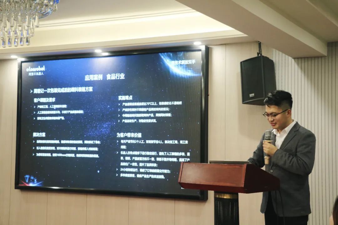 西南大区销售总监赵云龙发表《科技赋能 助力食业发展》主题演讲。云龙表示,食品行业既是传统行业,更是“新兴”产业,蕴藏巨大需求量。过去,在应用端,阿童木机器人相继已为超500家规模级企业客户服务,产品经多年市场实测,广获客户好评。未来,期待能继续携手西南区域食品行业供应链各合作伙伴,挖掘更多合作空间,携手共赢。