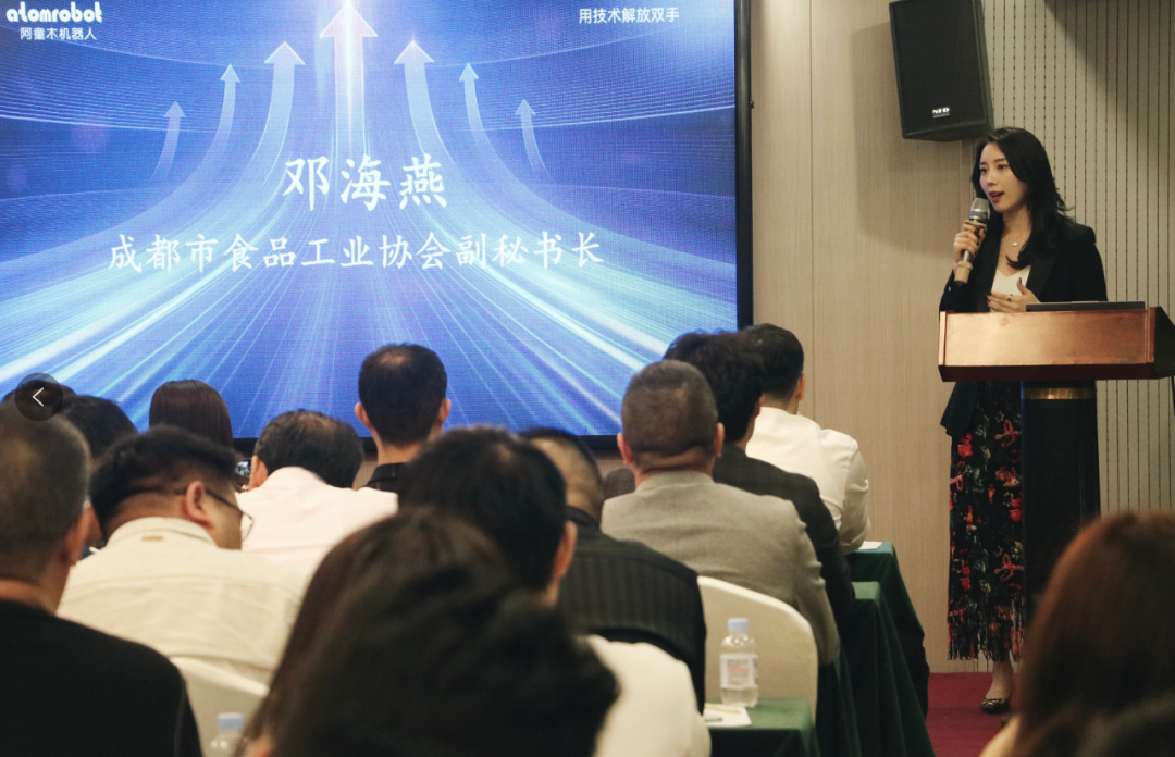宴会同步邀请到阿童木机器人合作商成都嵘兴科技有限公司总经理吴盛春、成都市食品工业协会副秘书长邓海燕出席发言。