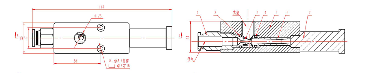 型号 最高使用压力 喷嘴直径 使用温度范围 建议供气管径 建议真气管径 最大耗气量 最大真空流量