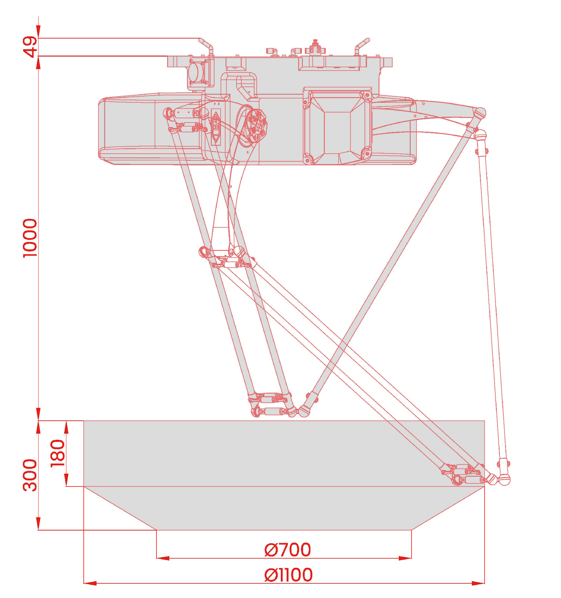 经典高速并联机器人的构型,具有沿三维空间XYZ轴平动和绕Z轴旋转的功能特点,通过搭配高精度机器视觉系统,适于食品、医药等行业的高速生产作业,主要用于轻小散乱物料的装配、搬运、分拣等。