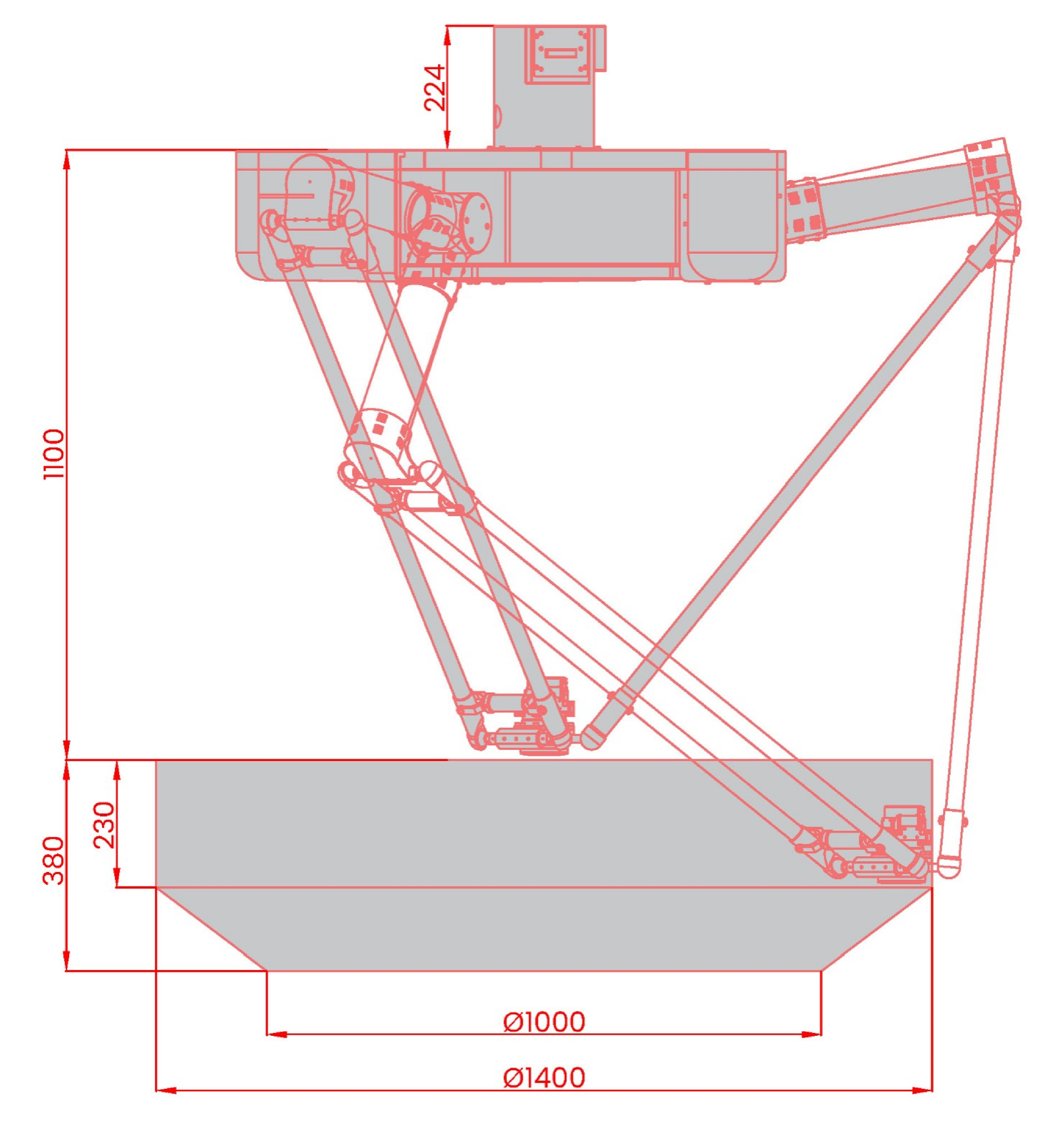 经典高速并联机器人构型,具有沿三维空间XYZ轴平动和绕Z轴旋转的功能特点,通过搭配高精度机器视觉系统,适于食品、医药等行业的高速生产作业,主要用于轻小散乱物料的装配、搬运、分拣等。