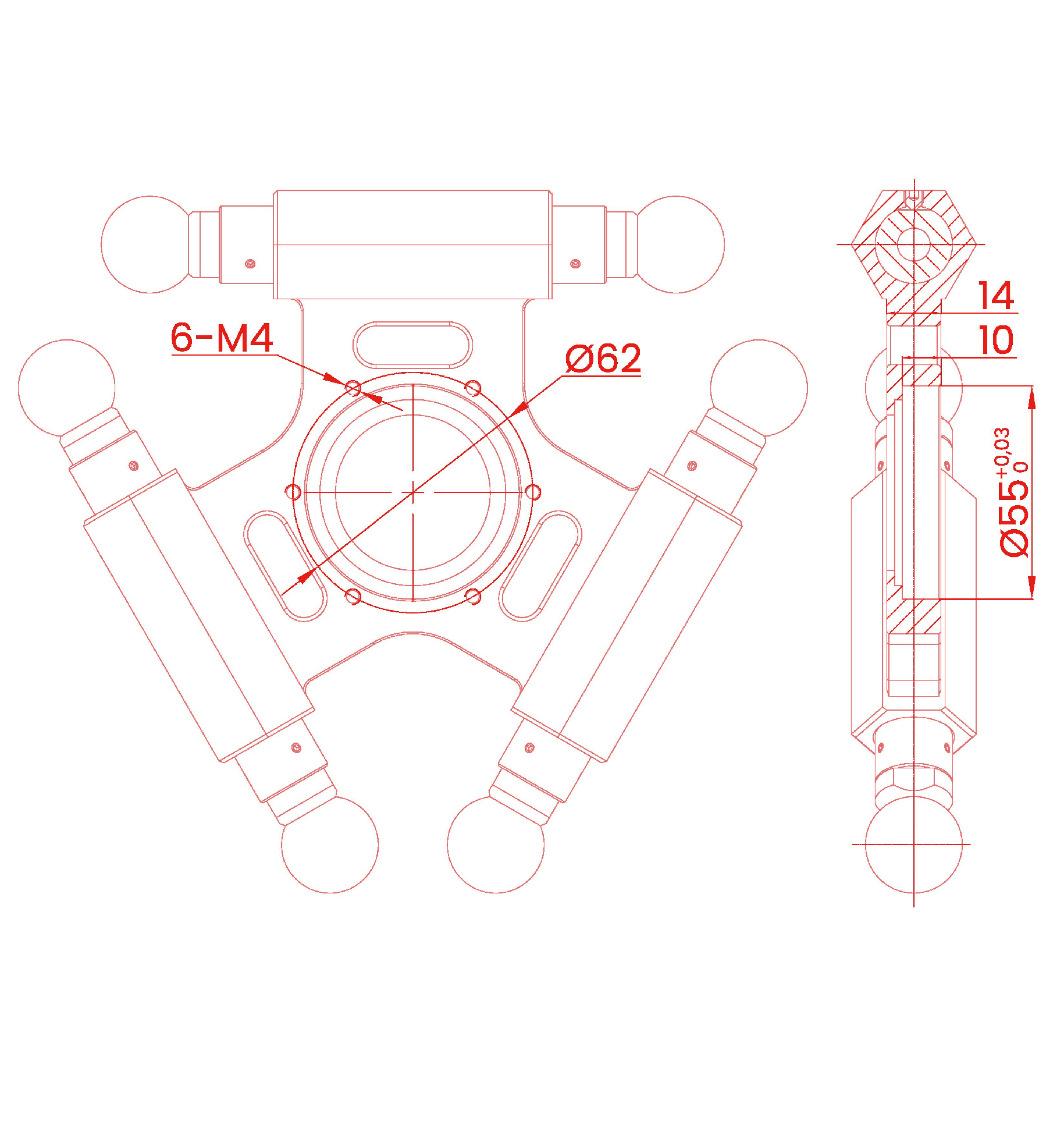 经典高速并联机器人构型,具有沿三维空间XYZ轴平动和绕Z轴旋转的功能特点,通过搭配高精度机器视觉系统,适于食品、医药等行业的高速生产作业,主要用于轻小散乱物料的装配、搬运、分拣等。