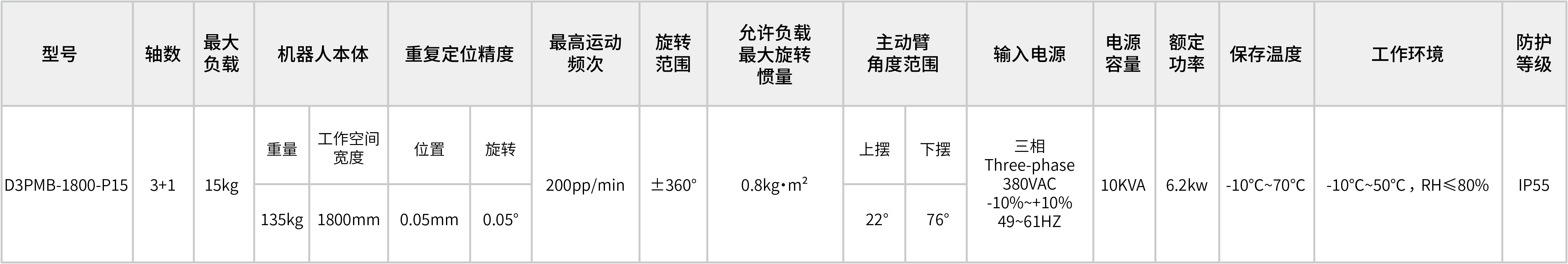 经典高速并联机器人构型,具有沿三维空间XYZ轴平动和绕Z轴旋转的功能特点,通过搭配高精度机器视觉系统,适于PCB板叠板、3C行业电子装配和新能源电池搬运等高动态精度场景。