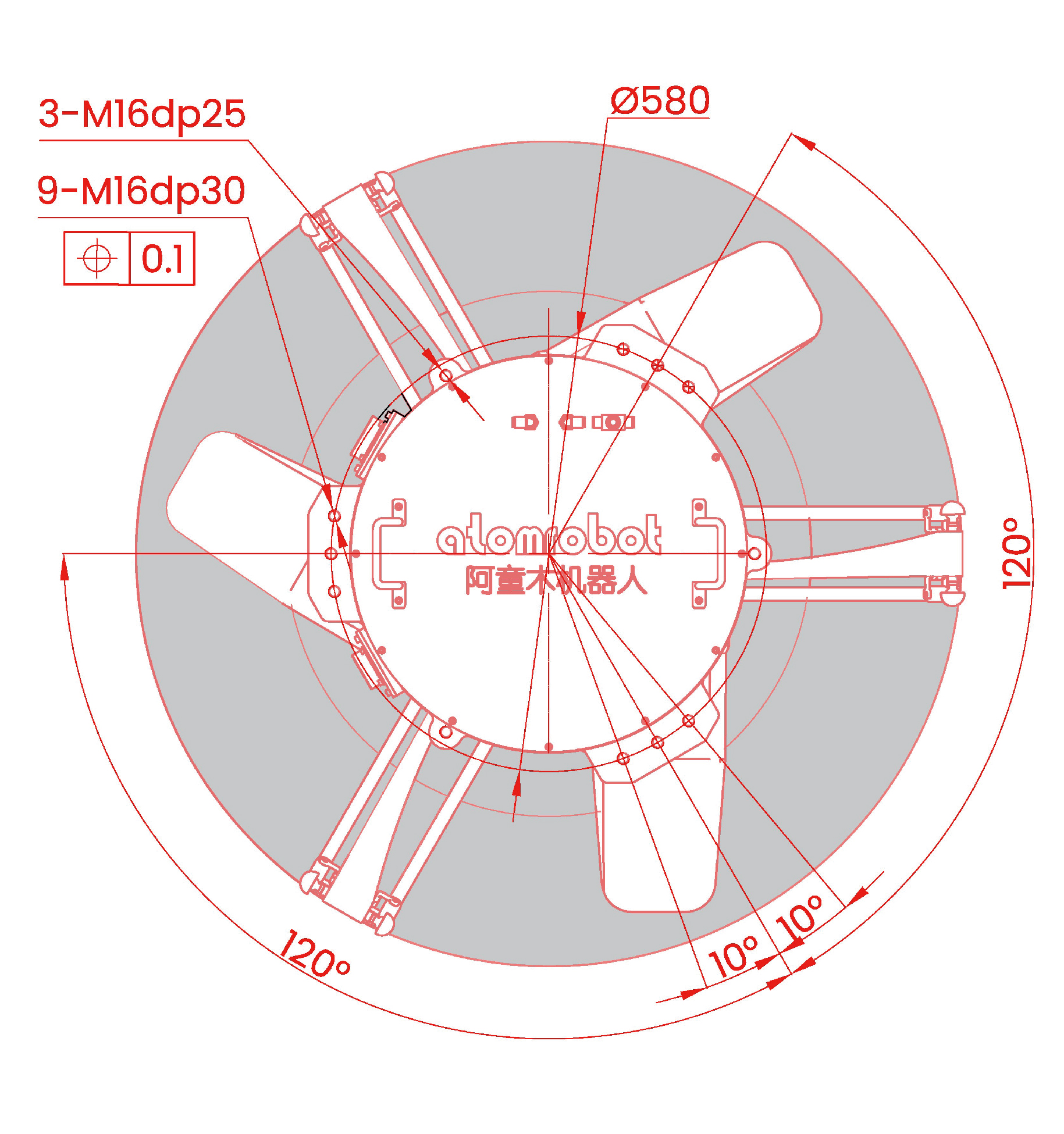 01.外形尺寸及运动范围(mm)