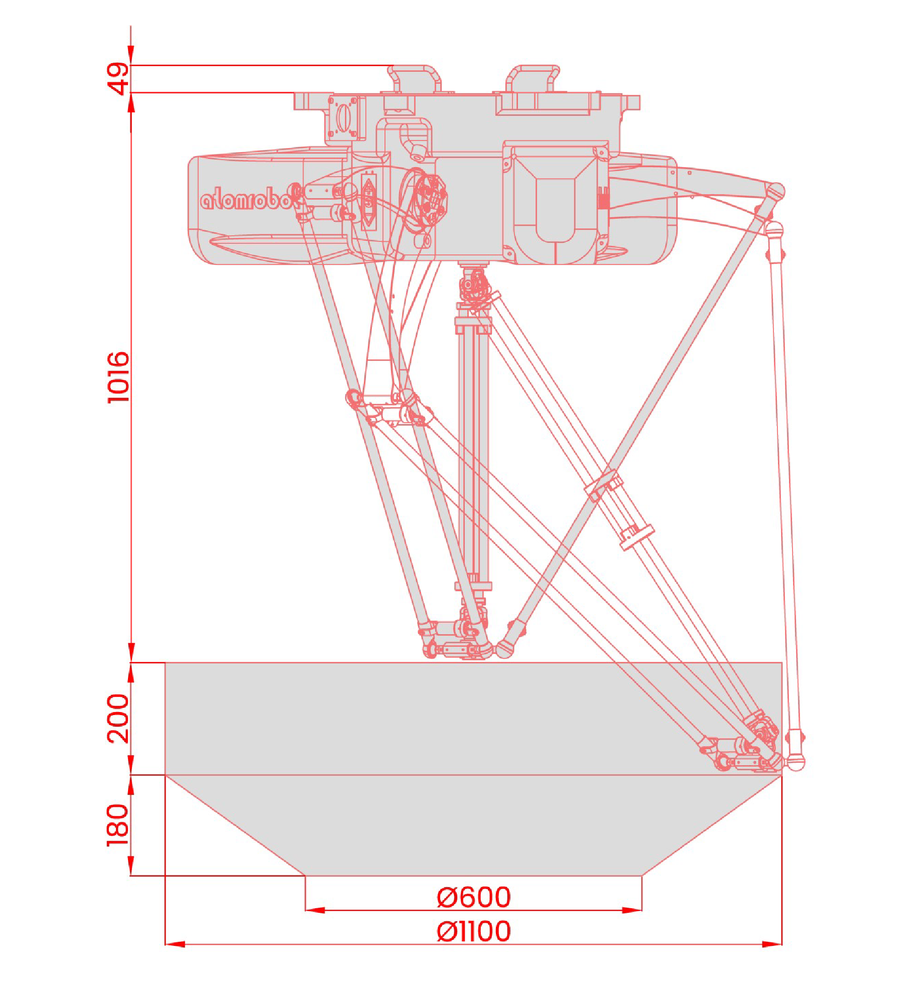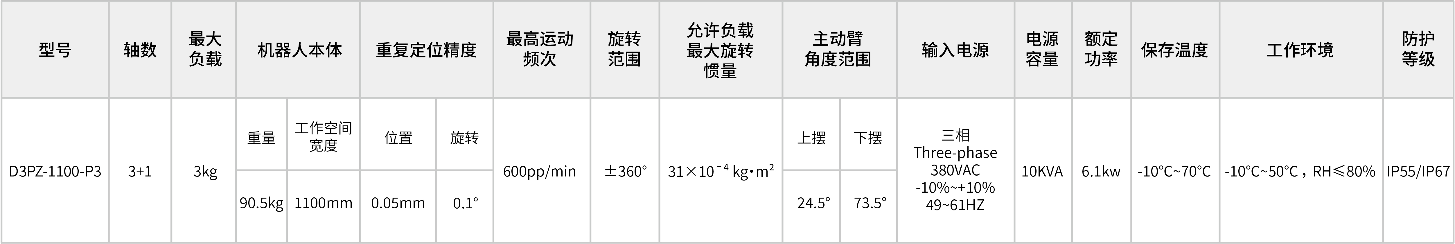 经典高速并联机器人的构型,具有沿三维空间XYZ轴平动和绕Z轴旋转的功能特点,通过搭配高精度机器视觉系统,适于食品、医药等行业的高速生产作业,主要用于轻小散乱物料的装配、搬运、分拣等。