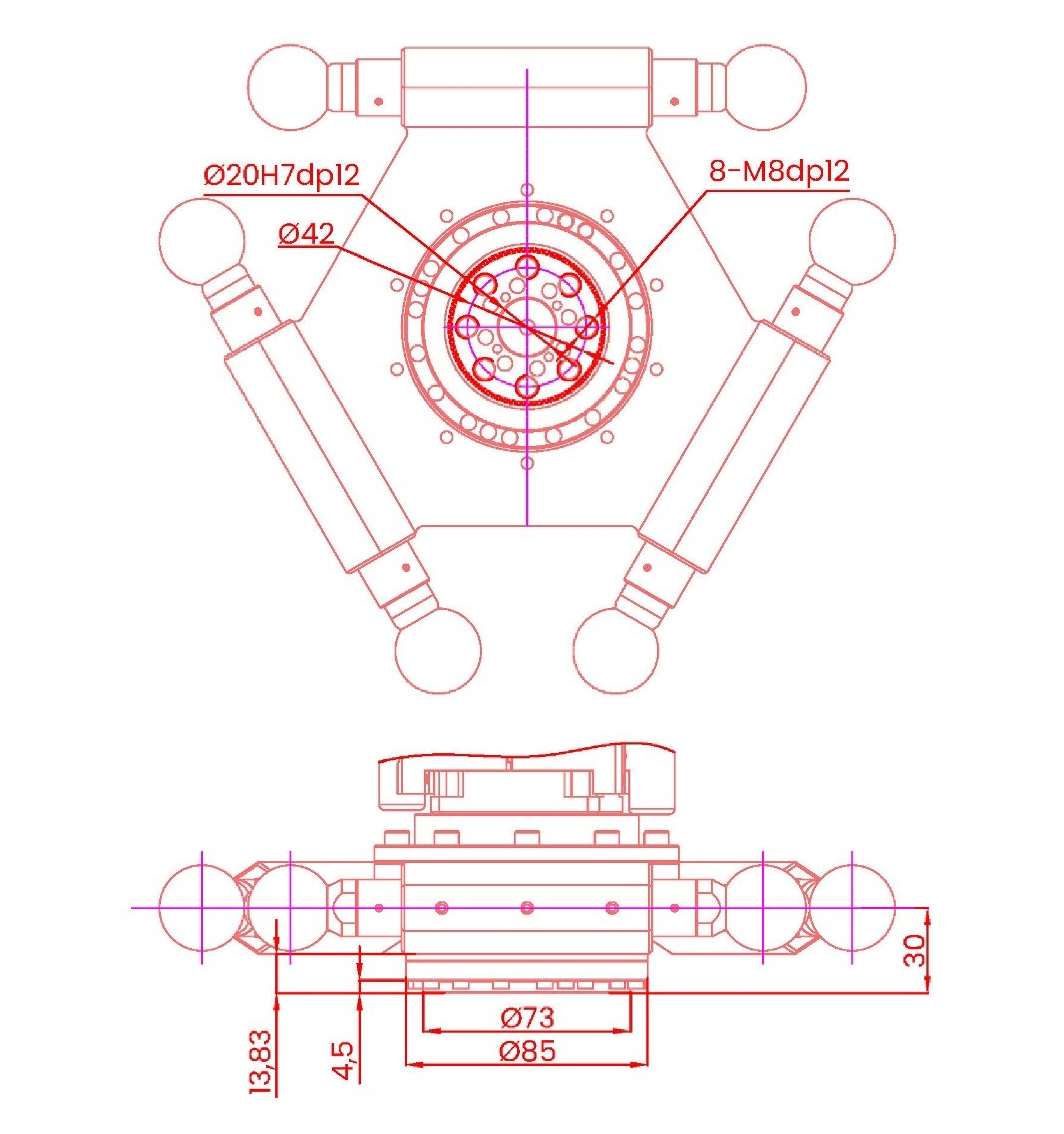 经典高速并联机器人构型,具有沿三维空间XYZ轴平动和绕Z轴旋转的功能特点,通过搭配高精度机器视觉系统,适于食品、医药等行业的高速生产作业,主要用于轻小散乱物料的装配、搬运、分拣等。