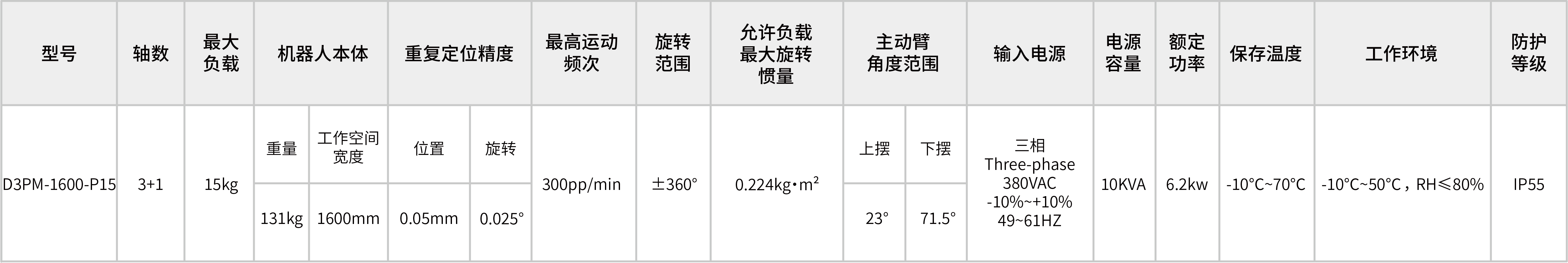 经典高速并联机器人构型,具有沿三维空间XYZ轴平动和绕Z轴旋转的功能特点,通过搭配高精度机器视觉系统,适于食品、医药等行业的高速生产作业,主要用于轻小散乱物料的装配、搬运、分拣等。