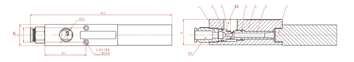 2、大流量:喷嘴2mm,单级发生管即可达到102L/min真空流量。