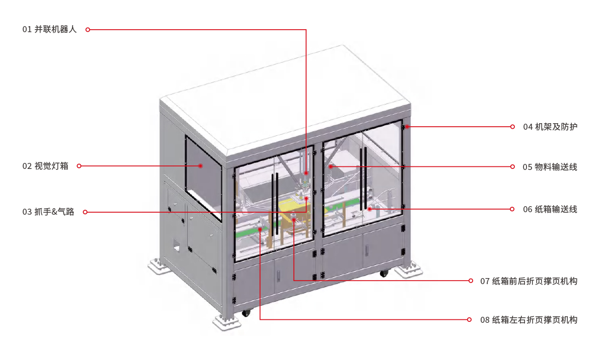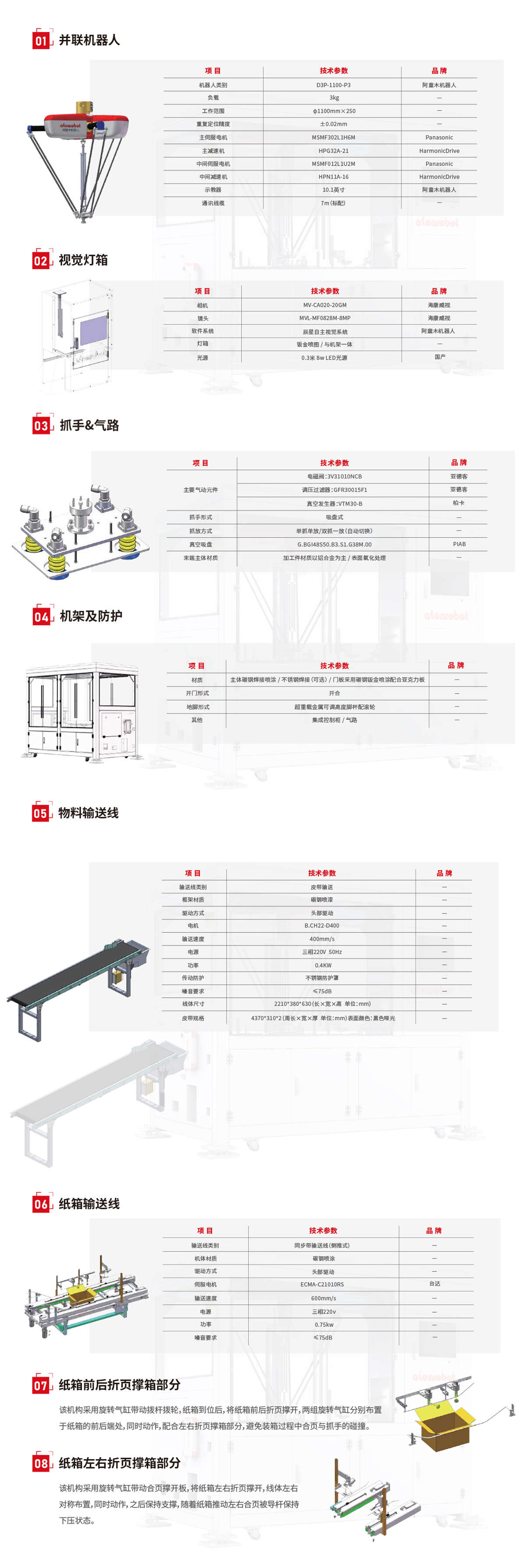一体式;运输便捷;部署方便;多物料装箱;视觉模板无需手动切换;快速换箱;合页支撑;精准定位 漏抓检测;掉落检测